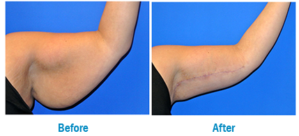 An arm lift, also known as brachioplasty, reduces excess skin and fat between the underarm and the elbow, reshapes the arm for smoother skin and contours, and results in a more toned and proportionate appearance. Fluctuations in weight, growing older and even heredity can cause your upper arms to have a drooping, sagging appearance. Exercise may strengthen and improve the underlying muscle tone of the upper arm, but it cannot address excess skin that has lost elasticity or underlying weakened tissues and localized fat deposits. Brachioplasty can address those issues. If the underside of your upper arms are sagging or appear loose and full due to excess skin and fat, an arm lift may be right for you.